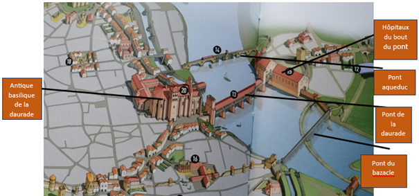 Il est à noter qu’en 1613 lors d’une crue de la Garonne qui provoqua la rupture de la chaussée du Bazacle, les vestiges d’un édifice romain apparurent, vraisemblablement un temple.